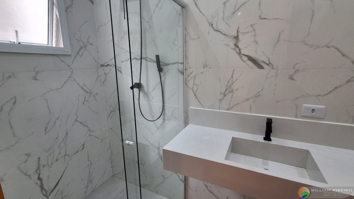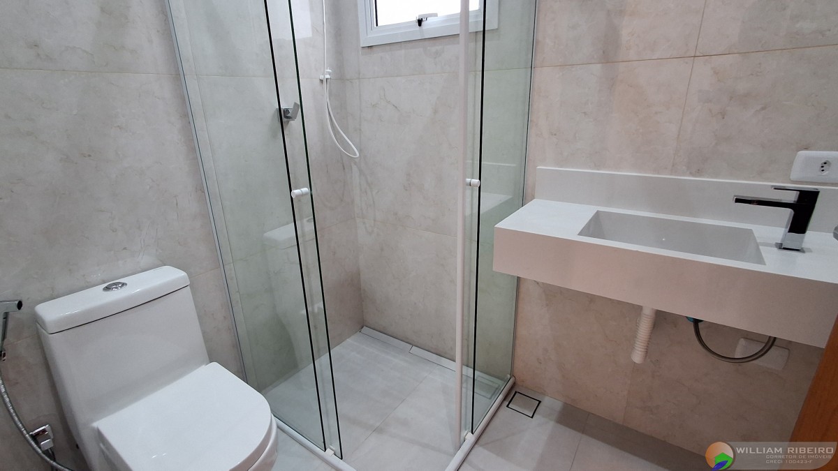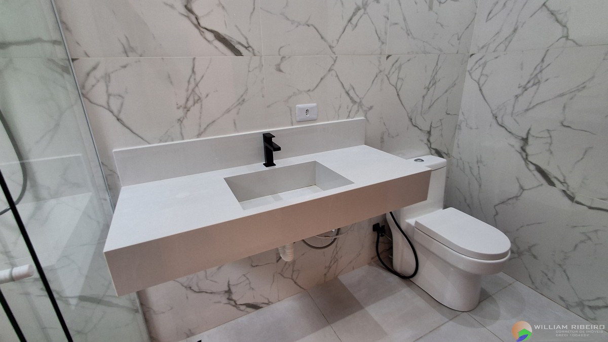 Um fino acabamento em porcelanato fosco, granito São Gabriel, branco Prime (pias de banheiros), alumínio branco, vidros temperados e mármores nobres em cada detalhe.